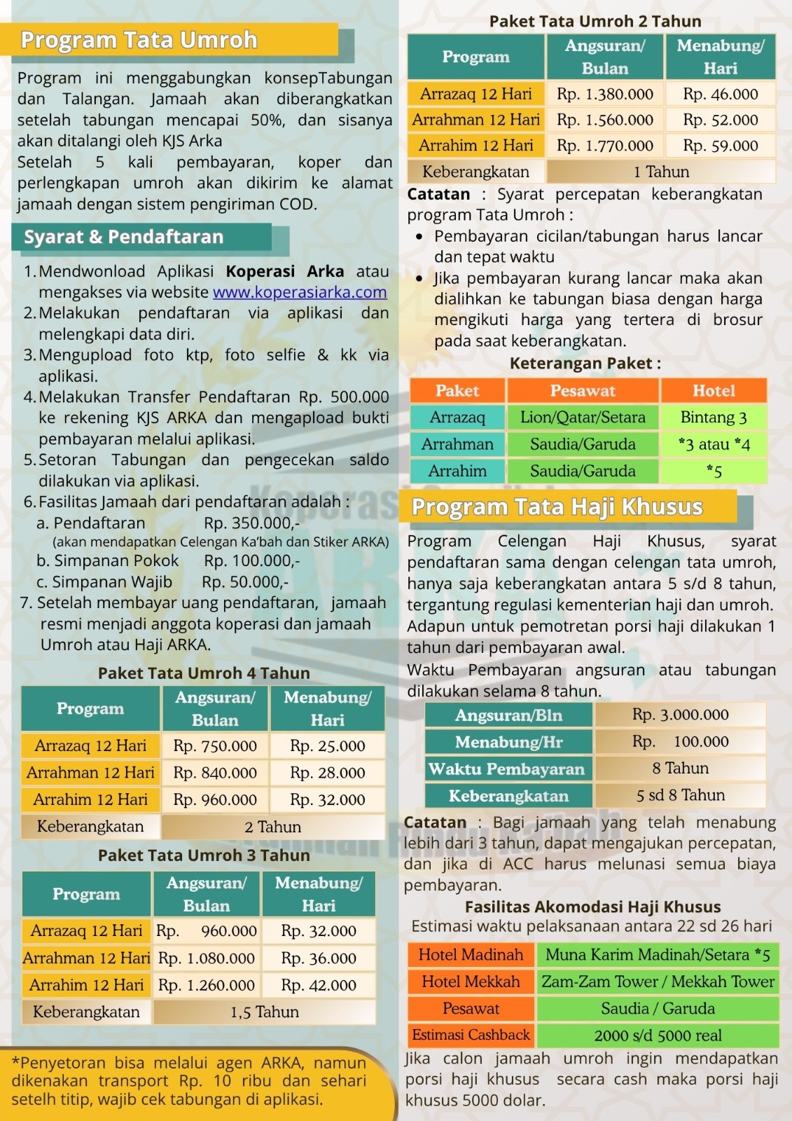 Program Tabungan dan Talangan ARKA dirancang agar semua kalangan dapat menunaikan ibadah Umroh dan Haji dengan cara yang sederhana, fleksibel, dan biaya terjangkau tanpa memberatkan anggota.